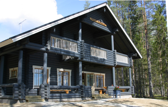 Talviasuttava kaksikerroksinen hirsihuvila.